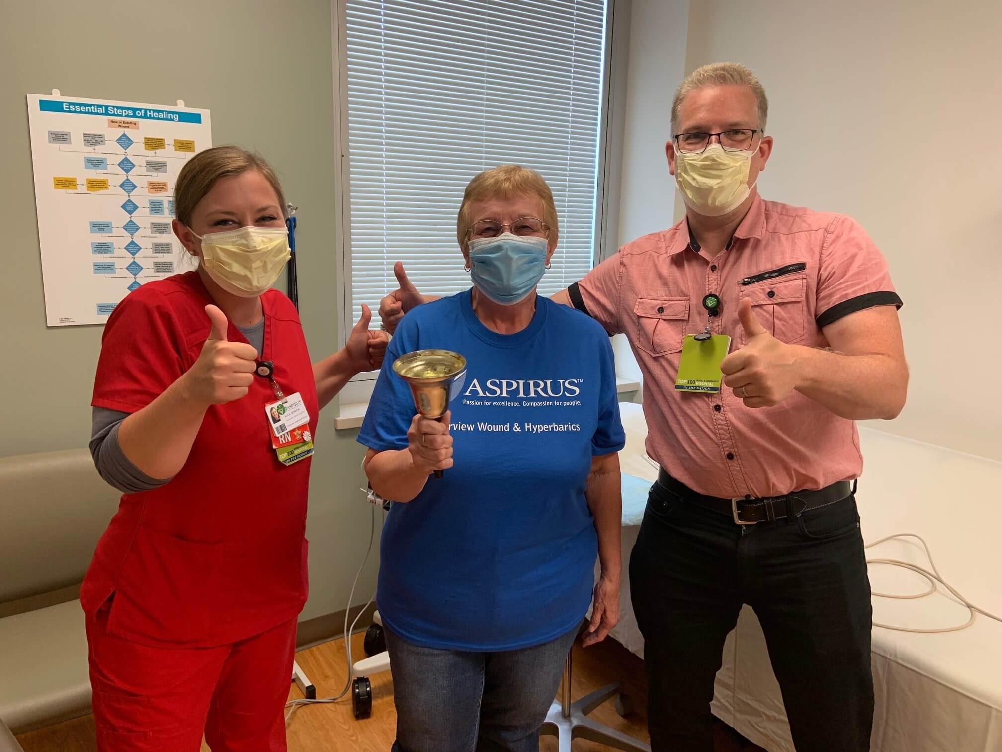 Candy had lower back surgery in October 2018, but her incision refused to heal. That’s when the team at Aspirus Riverview Wound & Hyperbarics Center became her second family. Every Thursday morning, Candy visited the center, where her doctors and nurses worked persistently until she could ring the bell to celebrate being healed.