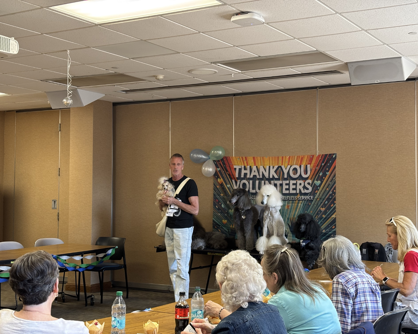 Volunteers enjoyed a festive pizza party complete with a special performance by entertainer Derrick Dupler and his talented poodles, whose act brought laughter and energy to the celebration.